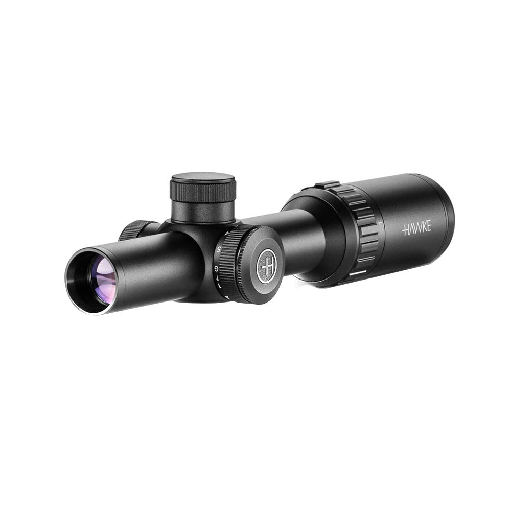 Designed for close- to mid-range hunting and shooting, the HAWKE Vantage IR 1-4x20 Riflescope boasts a partially-illuminated crosshair reticle with five selectable red/green brightness levels for use in most lighting conditions. Red is ideal for low-light conditions, while green is easier to see in bright sunlight.