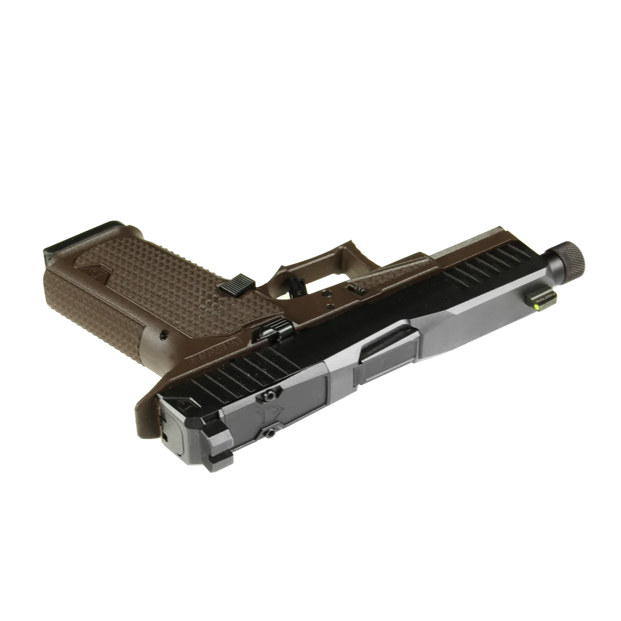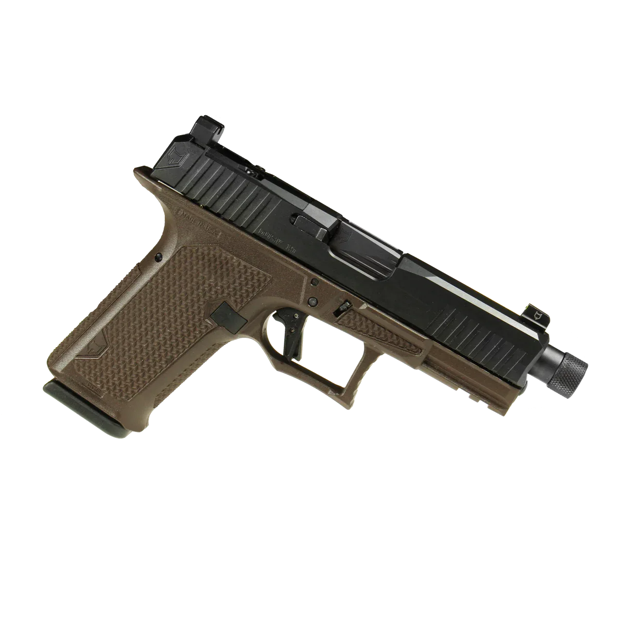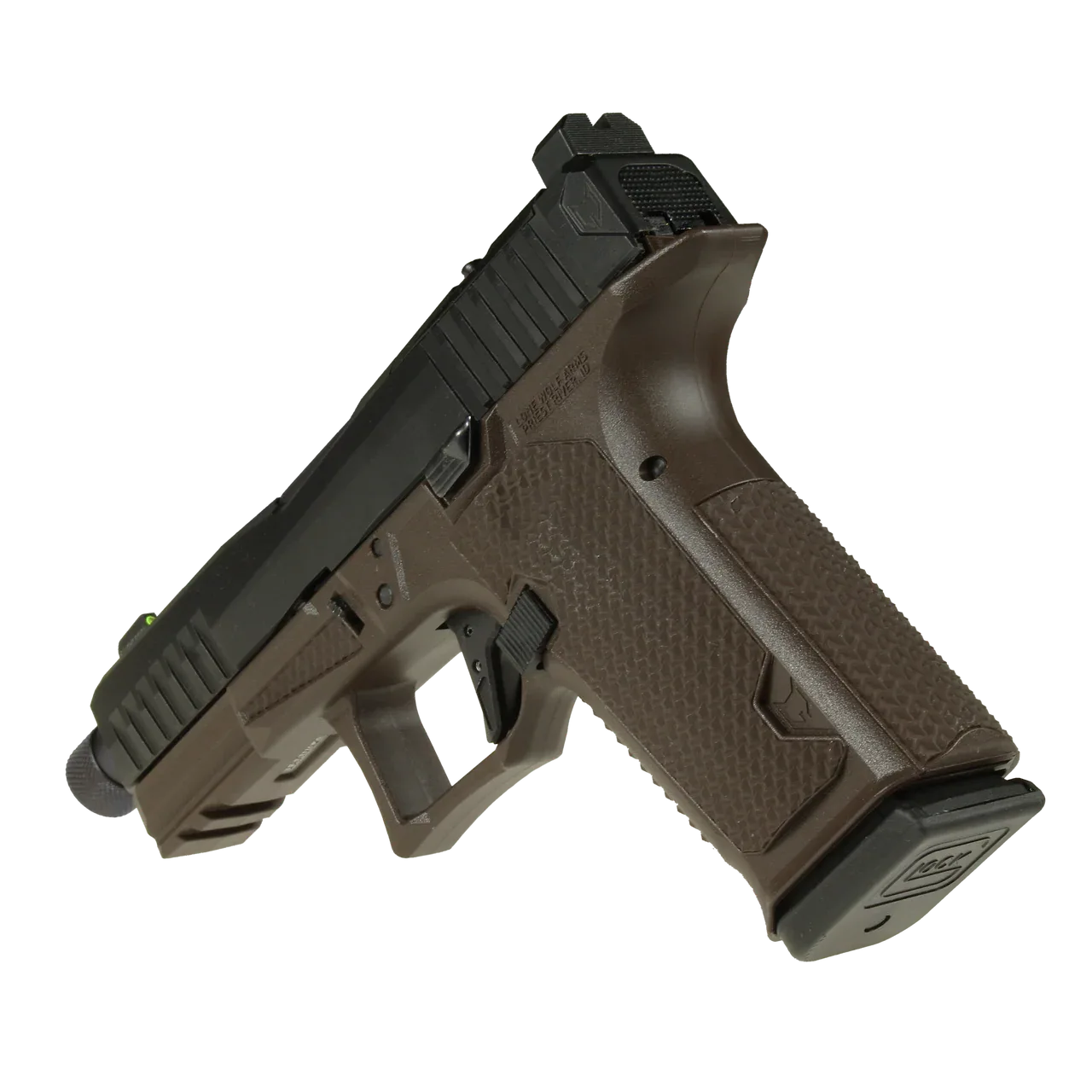 DUSK19 w/GG Slide and Dark Brown Frame, GG Barrel, NF Suppressor Sights, Flat Trigger, Threaded Barrel Lone Wolf Arms, a company known as a leader of innovation in the Glock aftermarket, is proud to announce the DUSK19 pistol line. With more than two decades of experience providing aftermarket solutions to enhance both the performance and aesthetics of the Glock-pattern pistol, Lone Wolf Arms has implemented these years of development into the DUSK19. The upper includes a new DUSK19 profile slide made of 17-4SS and finished in either an attractive black nitride or a selection of great PVD options such as flat dark earth, oil rubbed bronze, or graphite gray. Front and rear serrations on the slide provide ease of chambering and press-check. The slide is reflex sight-ready with the DUSK19 optic cover plate included, which is compatible with both Trijicon RMR/SRO and Holosun 407/507/508 (Non-K Models) footprints. Additionally, this slide includes a ? co-witness or suppressor height Night Fision Stealth Series sight with a Tritium insert for clear sight vision from DUSK to dawn. The upper also includes a 416 stainless-steel PVD coated barrel with the new DUSK 19 profile and is available in either threaded or non-threaded. The hood pocket and lateral ribs reduce bearing surface for faster cycling and coating wear resistance. The CCS frame features a 19° grip angle for improved point ability and interchangeable flat & rounded backstraps to allow the shooter the most comfortable choice of grip. The integrated take-down frame scallops for ease of function as well as integrated grip panels with a textured grip for an ergonomic, stable grip. The grip includes an integrated, flared magwell with a grip textured toe kick and an enlarged trigger guard to prevent Glock knuckle. The trigger is a new flat enhanced system with improved geometry for trigger take-up and decreased energy to actuate. The trigger also offers a 30% reduction in Peak Force from the OEM trigger for smooth and efficient shooting. Additionally, the DUSK19 with a threaded barrel is light, weighing in at 20.0 oz without a magazine, and is the perfect EDC size at an overall length of 7.655. The DUSK19 Handgun combines the shootability and convenience you look for in a Glock-pattern pistol with the premium, trusted Lone Wolf Arms parts you know and love, engineering a truly unique handgun that is comfortable to shoot and built to last. Key Features: Reflex Sight Ready with DUSK optic cover plate included Interchangeable flat & rounded backstraps for comfortable, customized grip and integrated grip panels with form-fitting texture Stainless steel PVD coated barrel with DUSK profile New enhanced flat trigger system and ergonomic guard profile to reduce Glock knuckle Front & rear serrations for ease of chambering and press check |